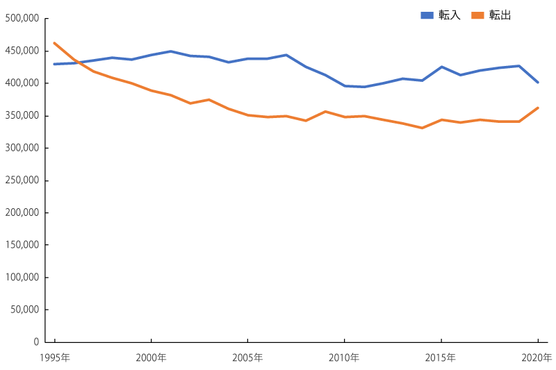 総務省統計局:住民基本台帳人口移動報告のデータを基に作成