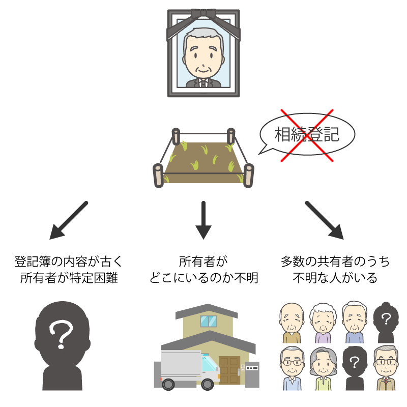 - 不動産登記簿を参照しても、所有者が誰なのかすぐに判明しない土地