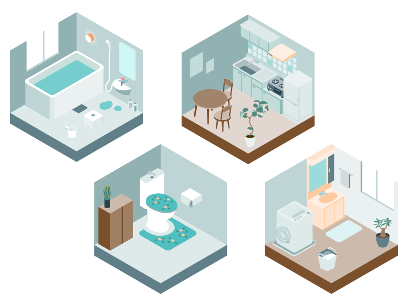 - 浴室やキッチンなど、水回りは水気を拭き取り、十分に換気する。