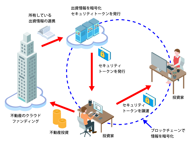 不動産STOとは“Security Token Offering” ブロックチェーン技術を利用して不動産を証券化し、株式のように自由に売買取引ができる商品のことです。