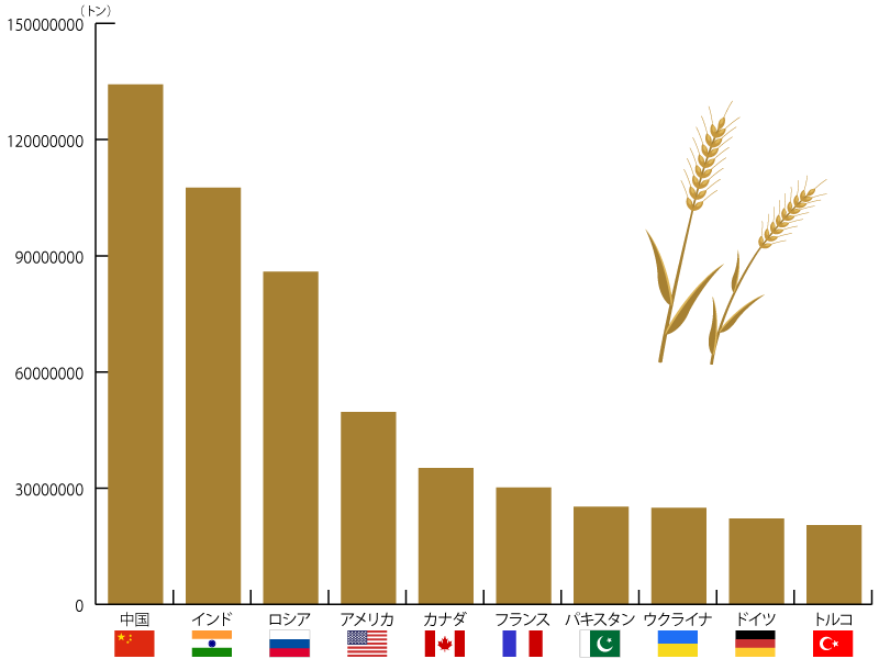小麦の生産量(2020年)